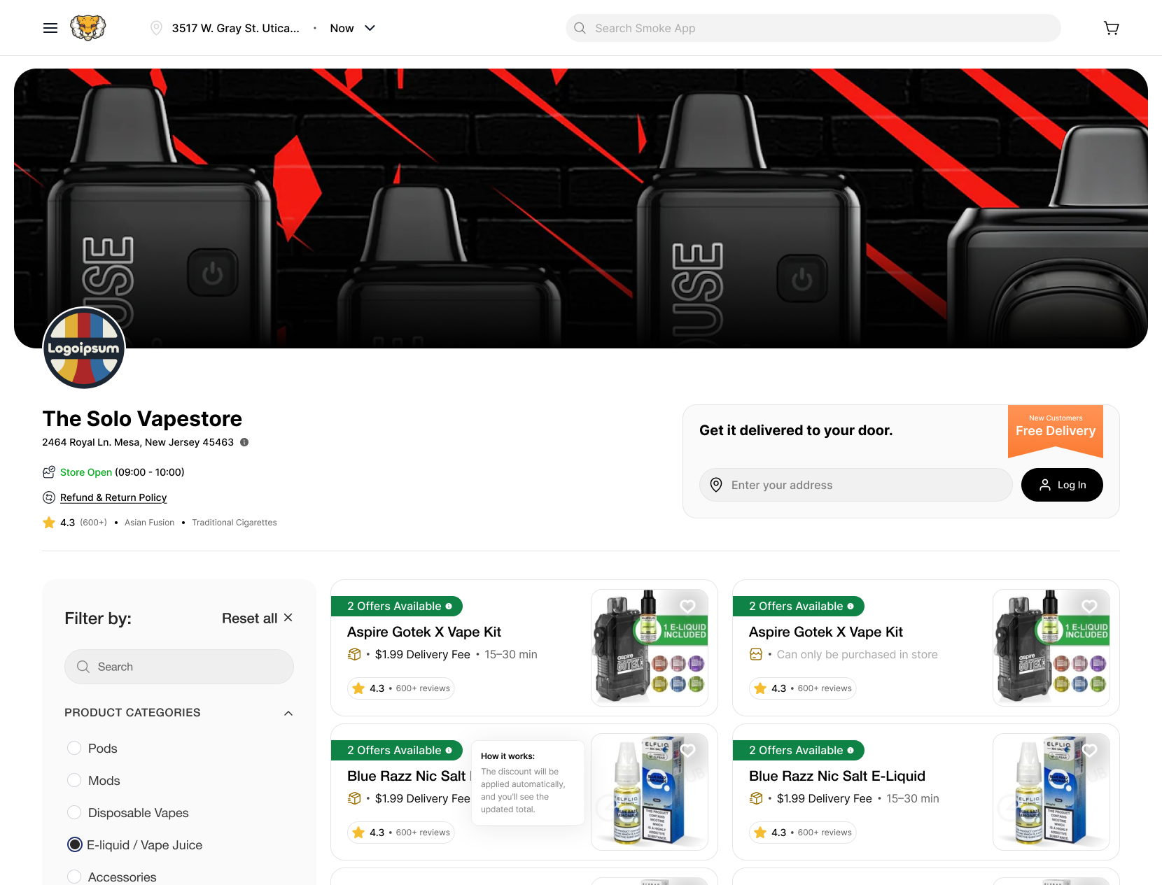 Local laws do not allow us to deliver, but with Smoke App, customers can view product availability and discover promotions we're running before they order for pick up. Straight forward! No absurd marketplace fees. It's a win-win for all!